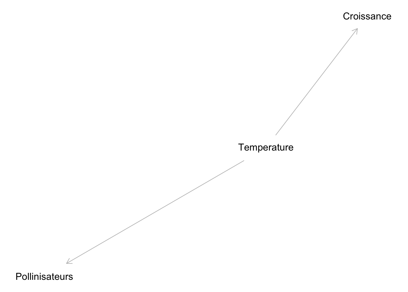 Mais, si on avait inclus la Température dans notre modèle expliquant la Croissance, on aurait rapidement constaté que les Pollinisateurs n’apportent aucune information utile supplémentaire en plus de la Température :