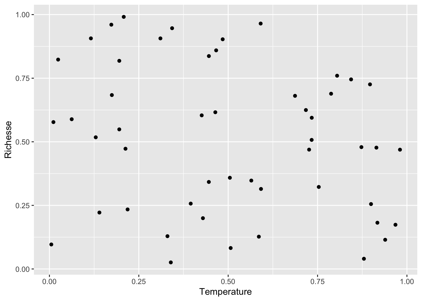 Supposons que le phénomène qui nous intéresse soit de comprendre si la Température influence la Richesse en espèces de plantes.