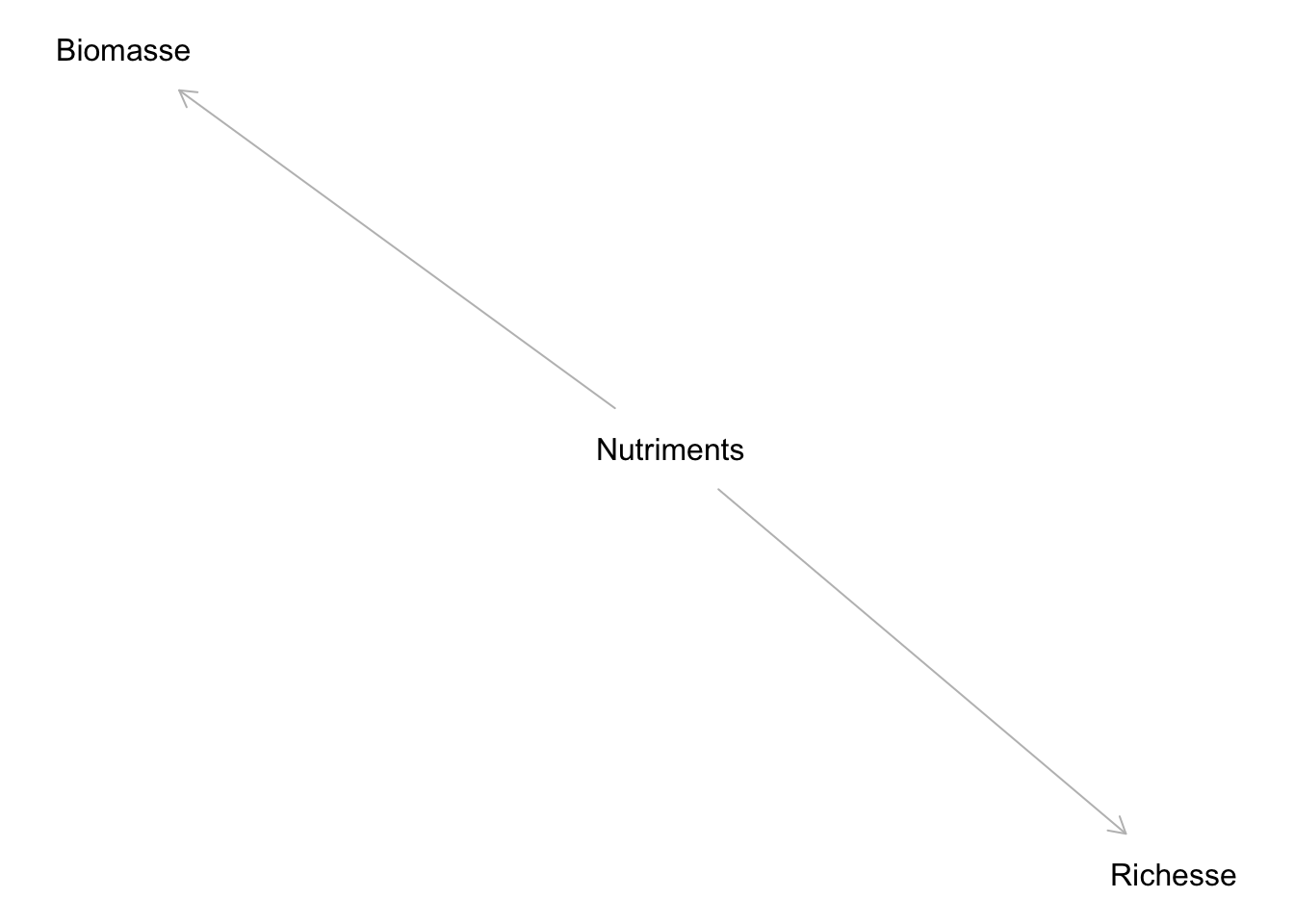Toute la difficulté réside alors dans le fait que, même si la Biomasse n’affecte pas la Richesse, ces dernières pourraient tout de même être corrélées entre elles, parce qu’elles sont toutes deux affectées par les Nutriments.