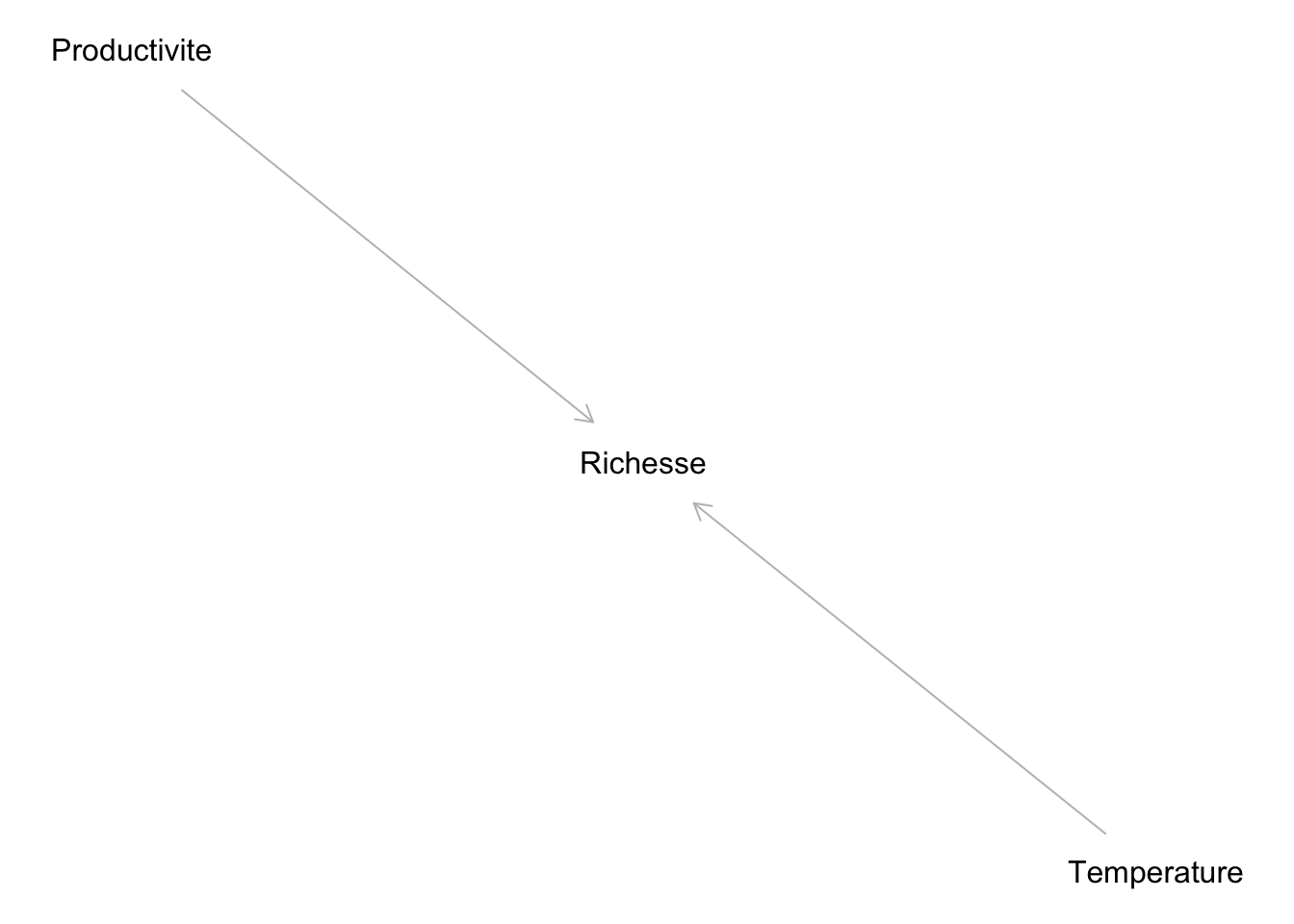 Et que par une mauvaise compréhension du phénomène, nous analysons nos données comme si la Productivité influençait la Richesse :
